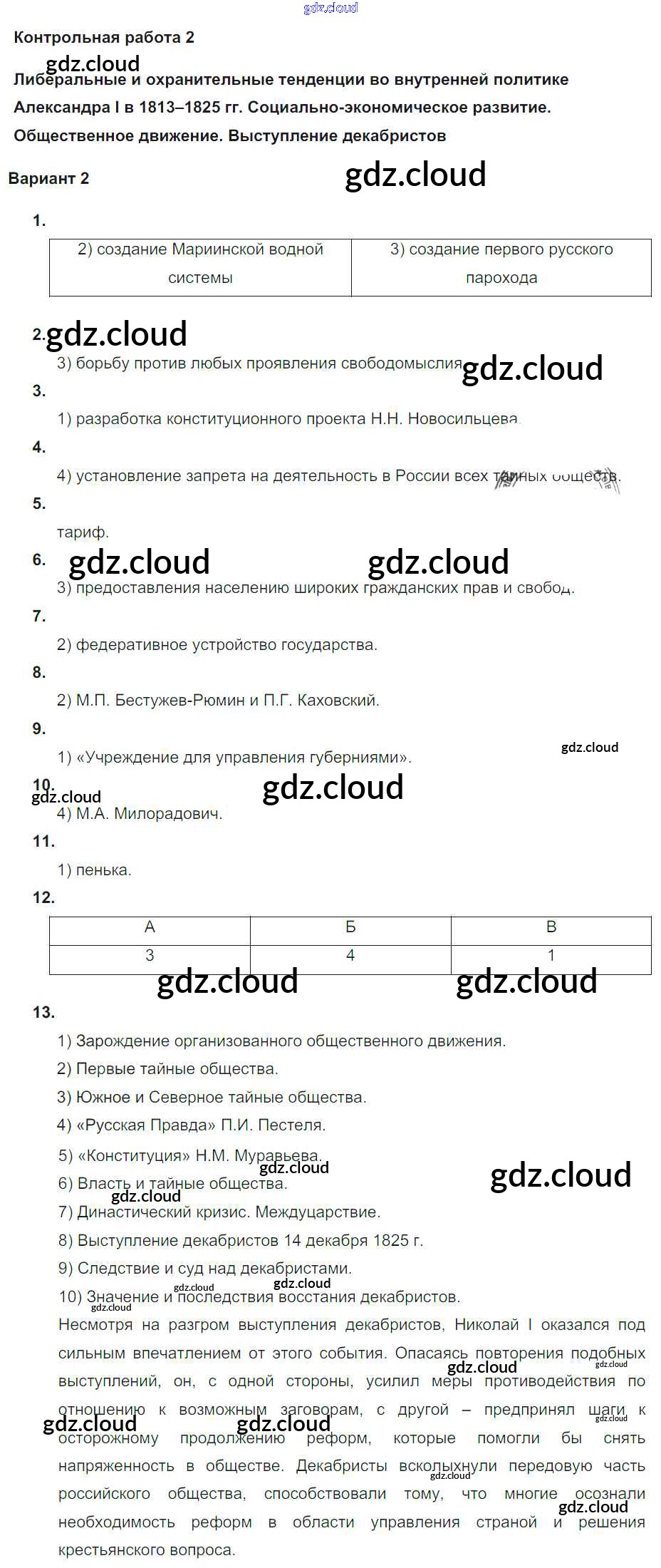 Ответы к КР-2. Варианты по Истории 9 класс Контрольные работы Соловьев УМК Экзамен