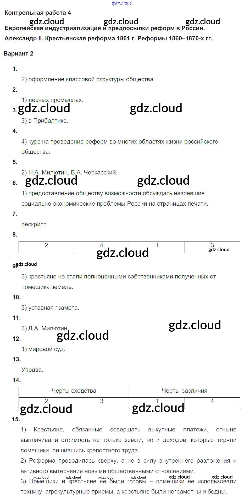 Ответы к КР-4. Варианты по Истории 9 класс Контрольные работы Соловьев УМК Экзамен