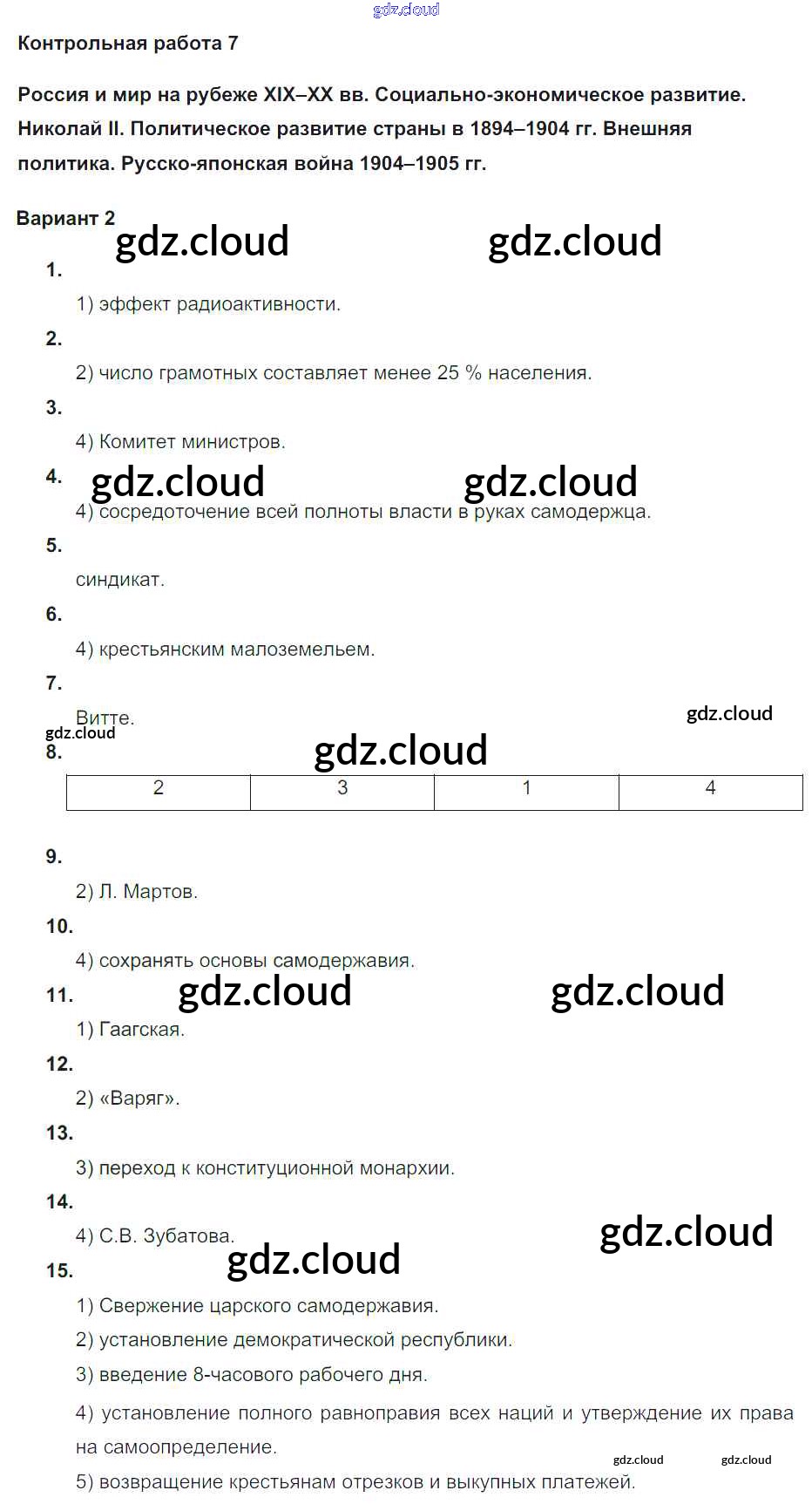 Ответы к КР-7. Варианты по Истории 9 класс Контрольные работы Соловьев УМК Экзамен