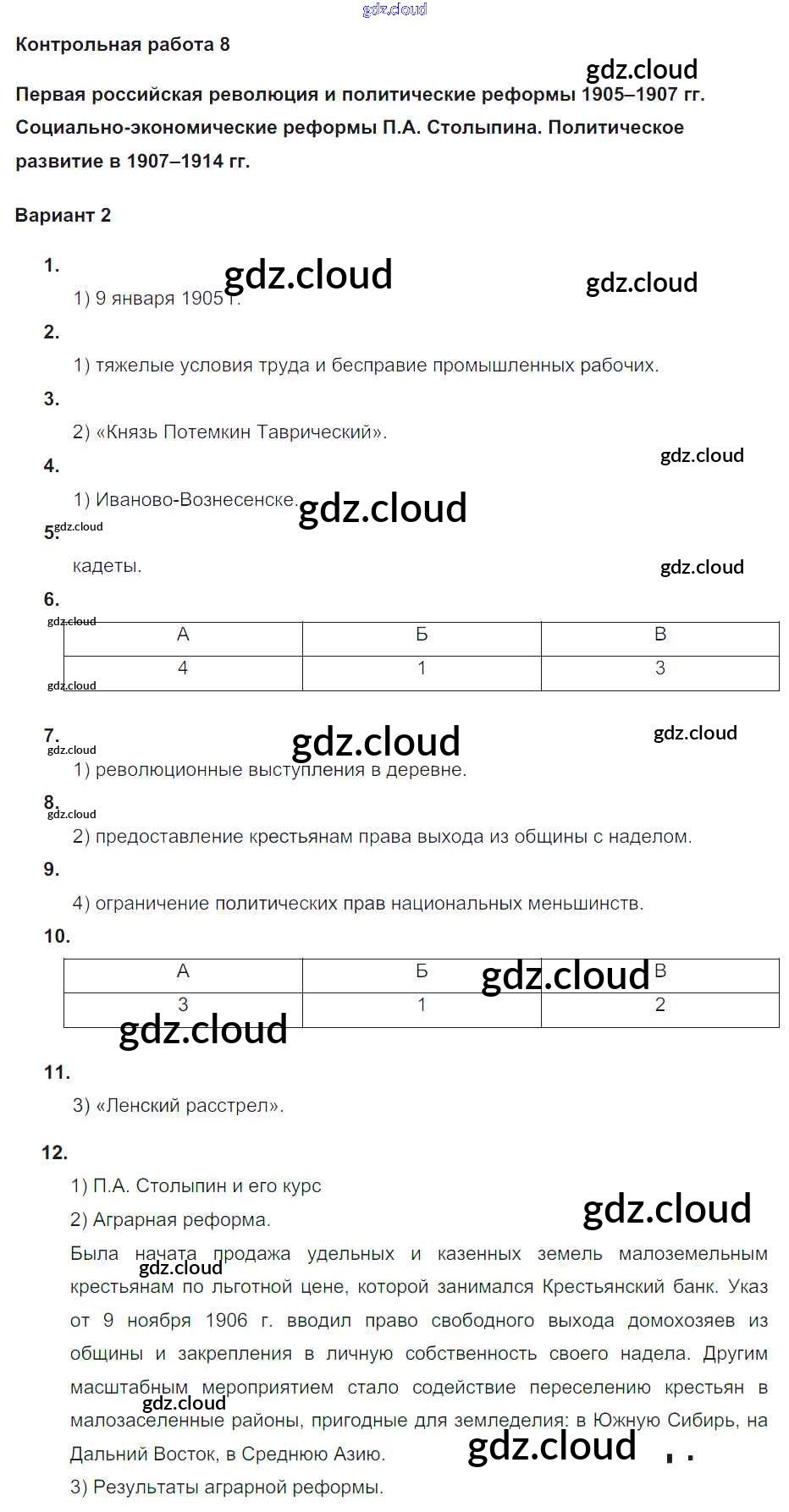 Ответы к КР-8. Варианты по Истории 9 класс Контрольные работы Соловьев УМК Экзамен