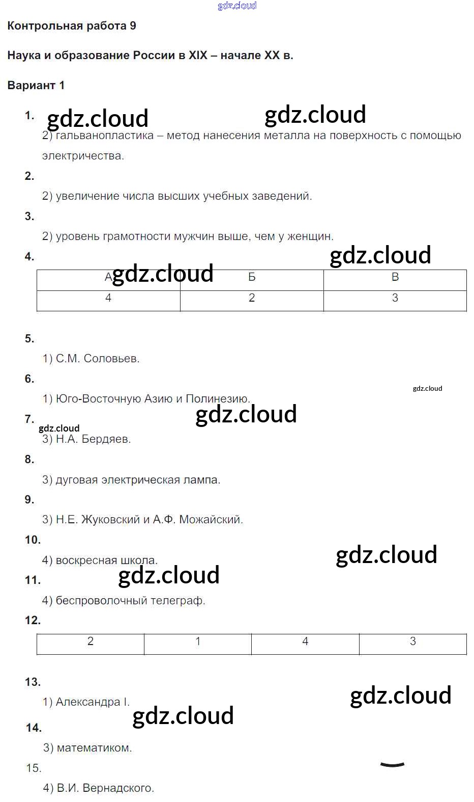 Ответы к КР-9. Варианты по Истории 9 класс Контрольные работы Соловьев УМК Экзамен