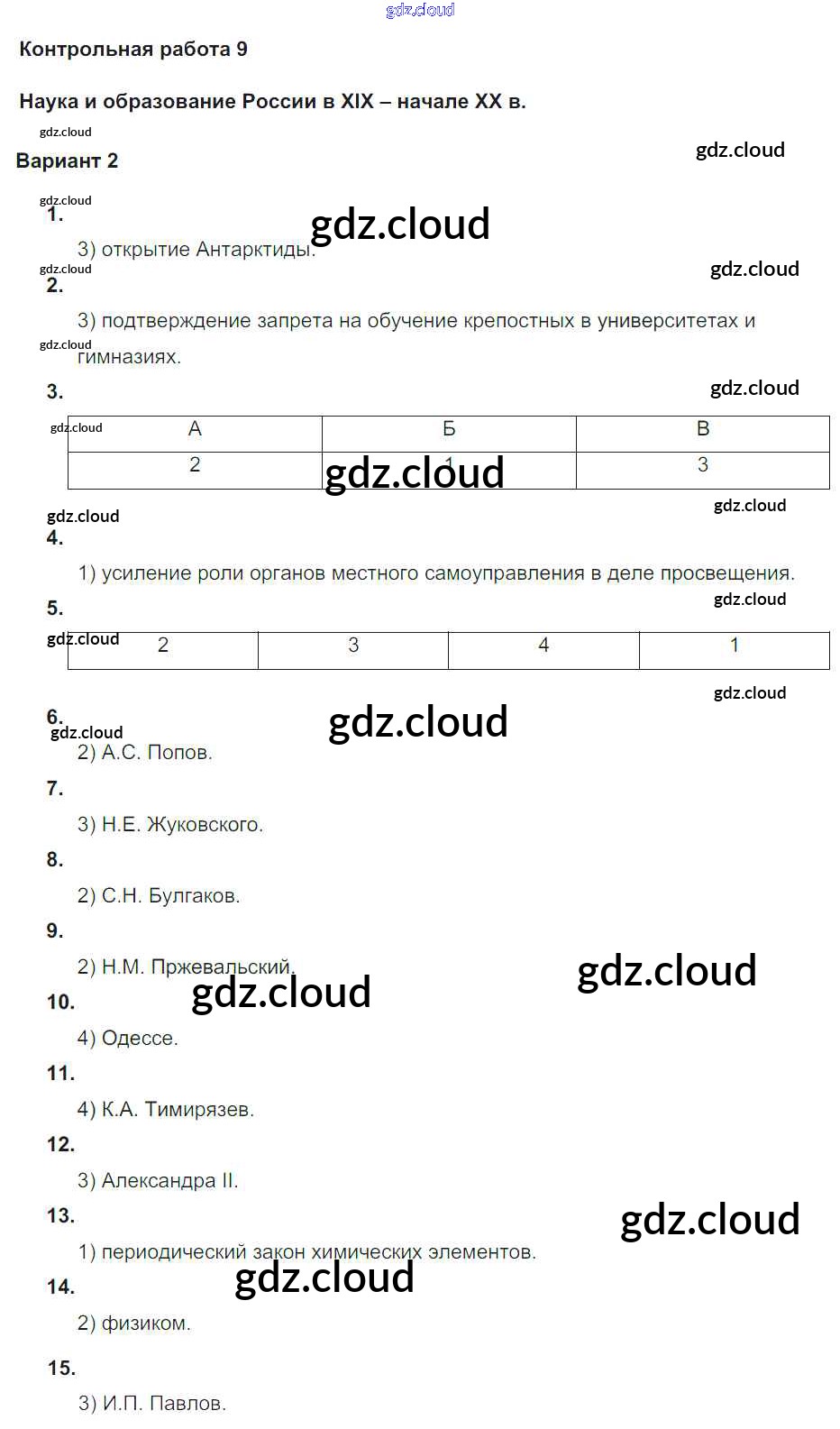 Ответы к КР-9. Варианты по Истории 9 класс Контрольные работы Соловьев УМК Экзамен