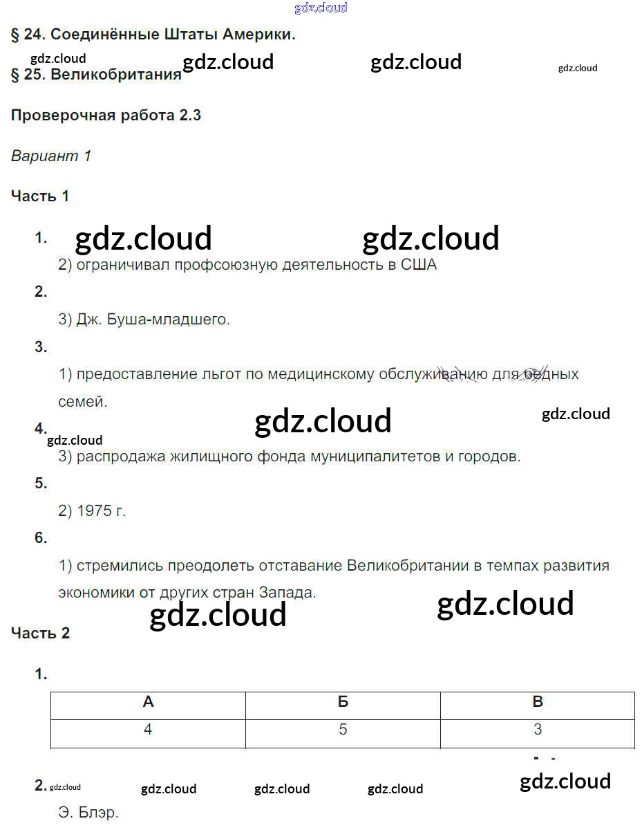 Параграфы 24-25 Ответы к Проверочным работам по Истории 9 класс Проверочные и контрольные работы Баранов Просвещение