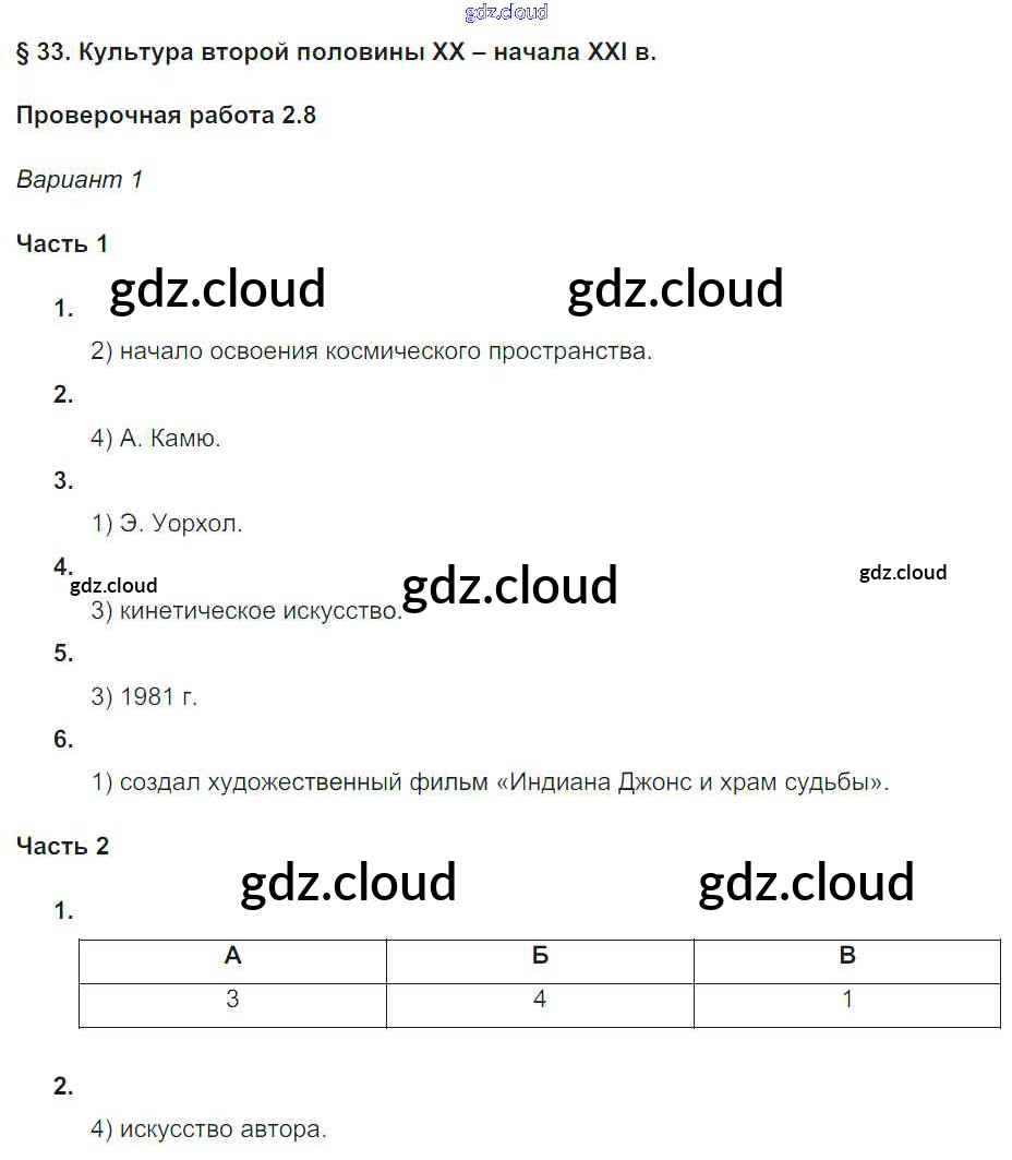 Параграфы 33 Ответы к Проверочным работам по Истории 9 класс Проверочные и контрольные работы Баранов Просвещение