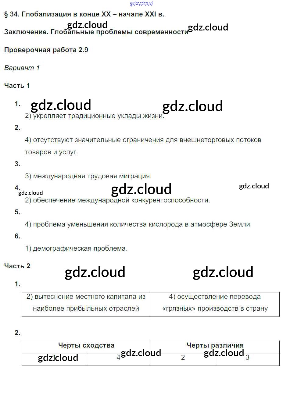 Параграфы 34 Ответы к Проверочным работам по Истории 9 класс Проверочные и контрольные работы Баранов Просвещение