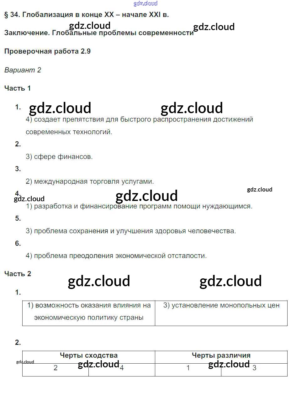 Параграфы 34 Ответы к Проверочным работам по Истории 9 класс Проверочные и контрольные работы Баранов Просвещение