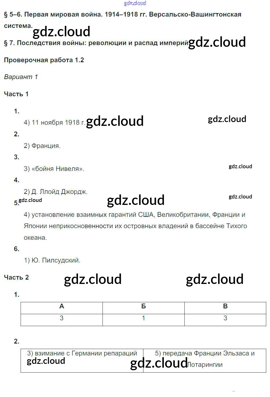 Параграфы 5-7 Ответы к Проверочным работам по Истории 9 класс Проверочные и контрольные работы Баранов Просвещение