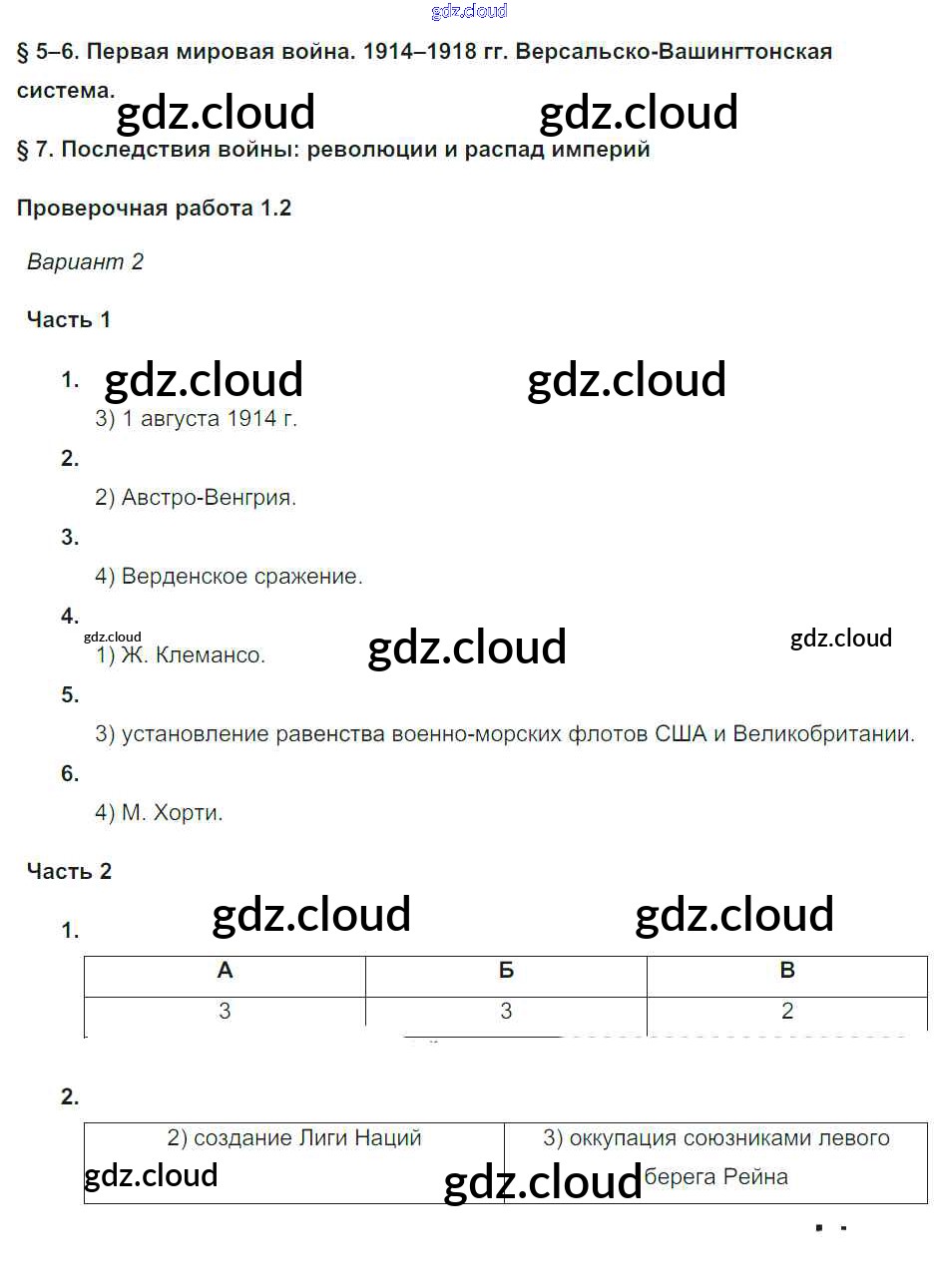 Параграфы 5-7 Ответы к Проверочным работам по Истории 9 класс Проверочные и контрольные работы Баранов Просвещение