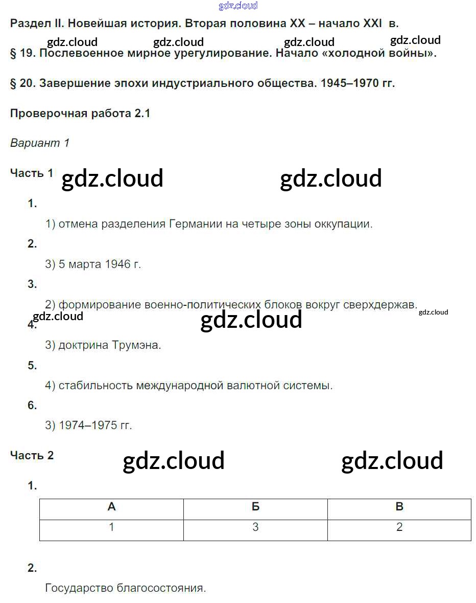 Параграфы 19-20 Ответы к Проверочным работам по Истории 9 класс Проверочные и контрольные работы Баранов Просвещение