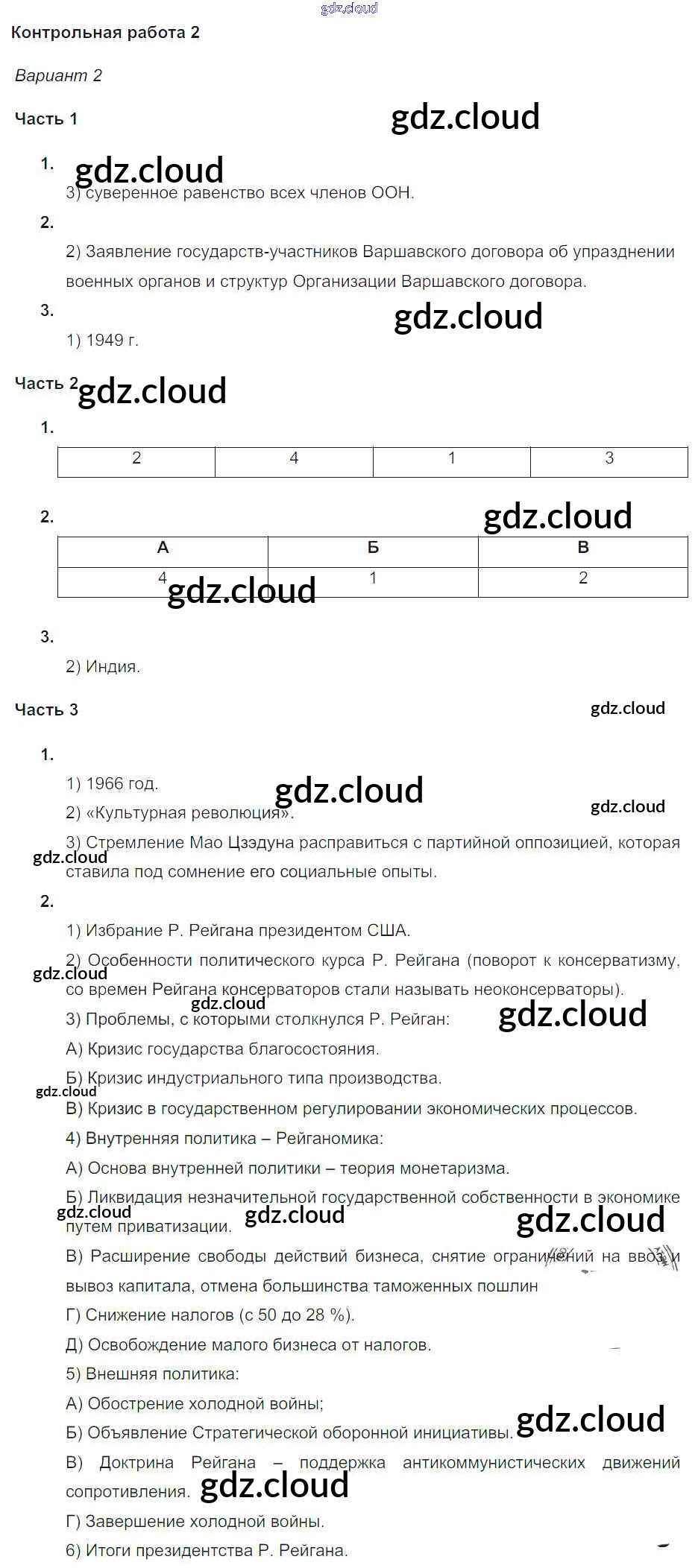 КР-2. Варианты Ответы к Контрольным работам по Истории 9 класс Проверочные и контрольные работы Баранов Просвещение