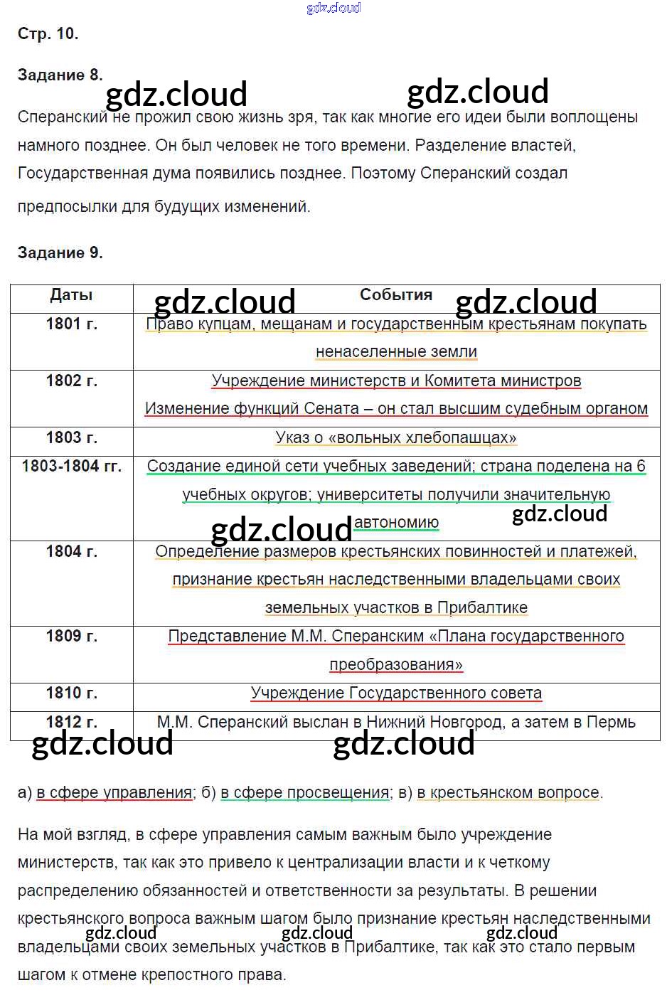 Ответ на задание стр.10 Рабочая тетрадь История за 9 (девятый) класс Чернова УМК 2017 Часть 1, 2