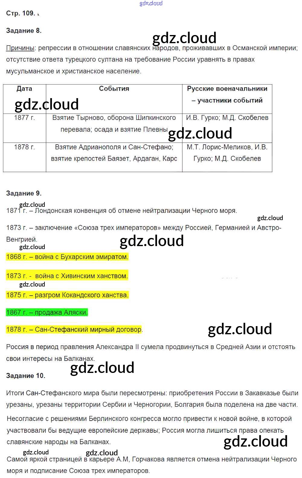 Ответ на задание стр.109 Рабочая тетрадь История за 9 (девятый) класс Чернова УМК 2017 Часть 1, 2