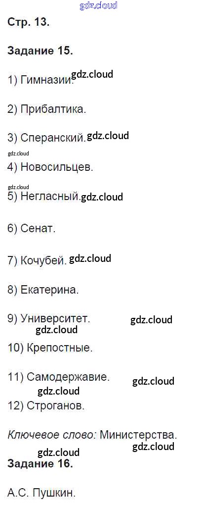 Ответ на задание стр.13 Рабочая тетрадь История за 9 (девятый) класс Чернова УМК 2017 Часть 1, 2