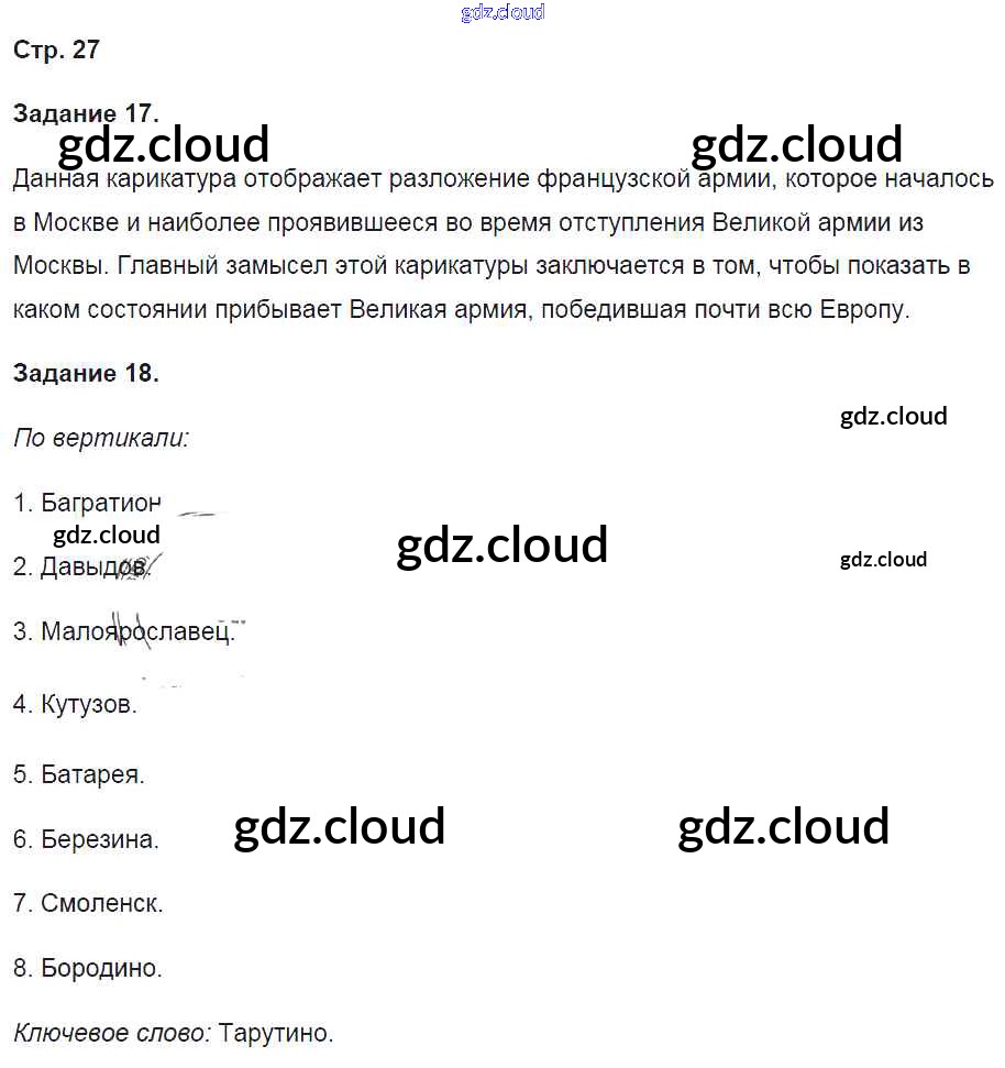 Ответ на задание стр.27 Рабочая тетрадь История за 9 (девятый) класс Чернова УМК 2017 Часть 1, 2