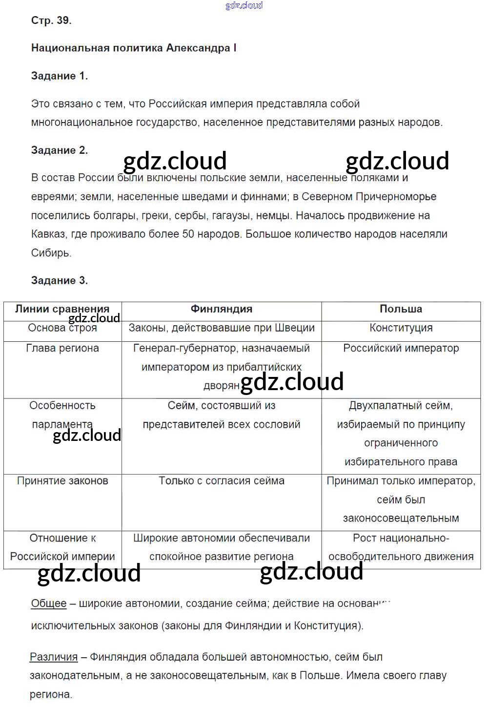 Ответ на задание стр.39 Рабочая тетрадь История за 9 (девятый) класс Чернова УМК 2017 Часть 1, 2