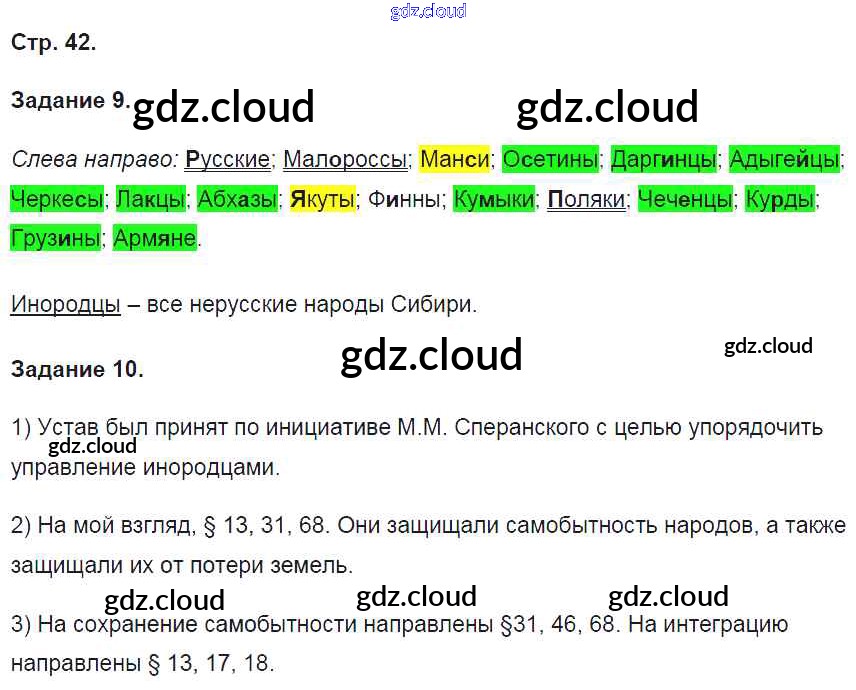 Ответ на задание стр.42 Рабочая тетрадь История за 9 (девятый) класс Чернова УМК 2017 Часть 1, 2