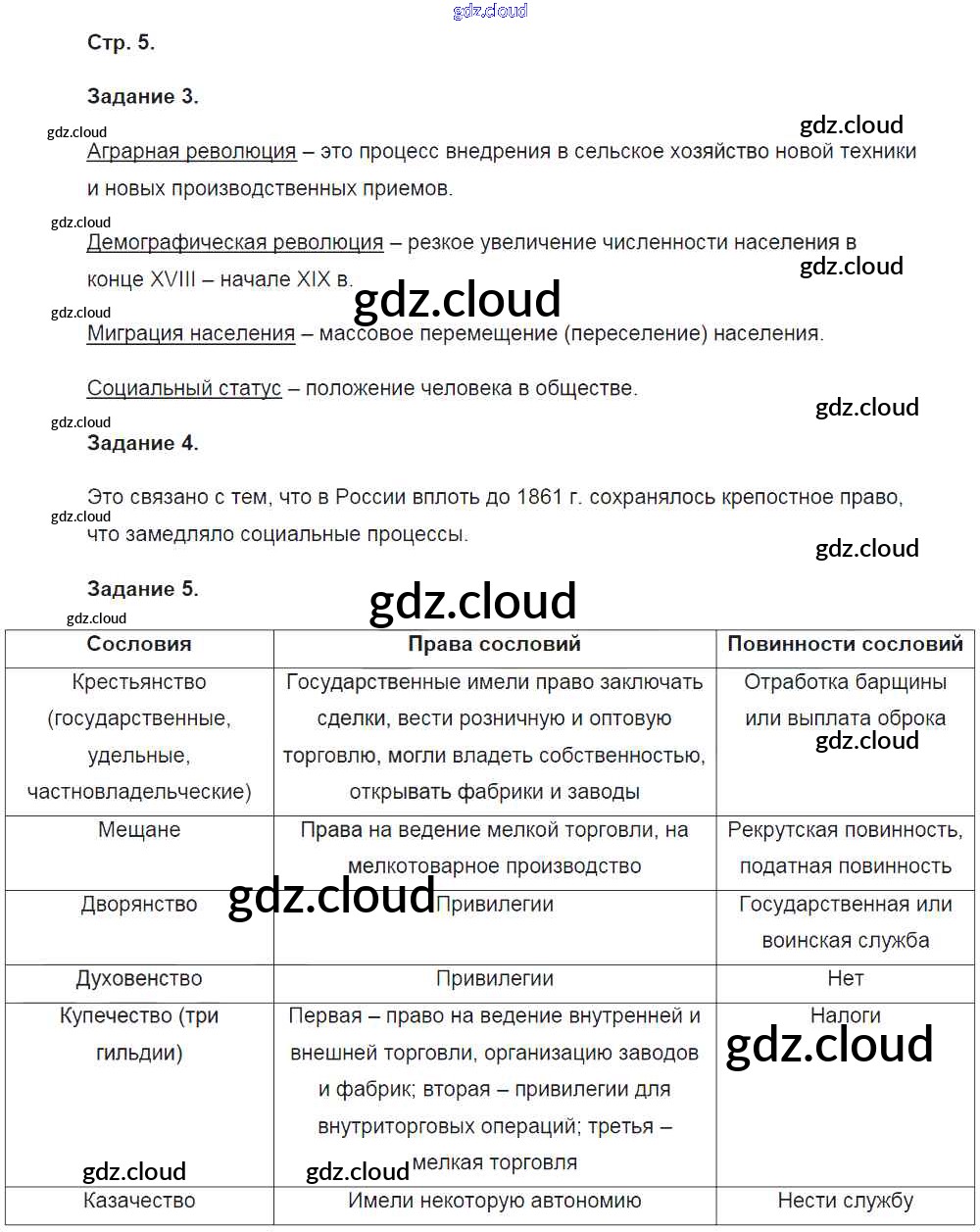 Ответ на задание стр.5 Рабочая тетрадь История за 9 (девятый) класс Чернова УМК 2017 Часть 1, 2 ФГОС онлайн и без номера телефона.
