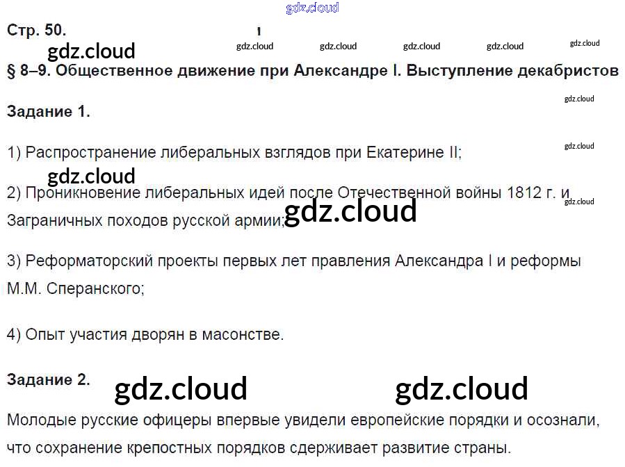Ответ на задание стр.50 Рабочая тетрадь История за 9 (девятый) класс Чернова УМК 2017 Часть 1, 2