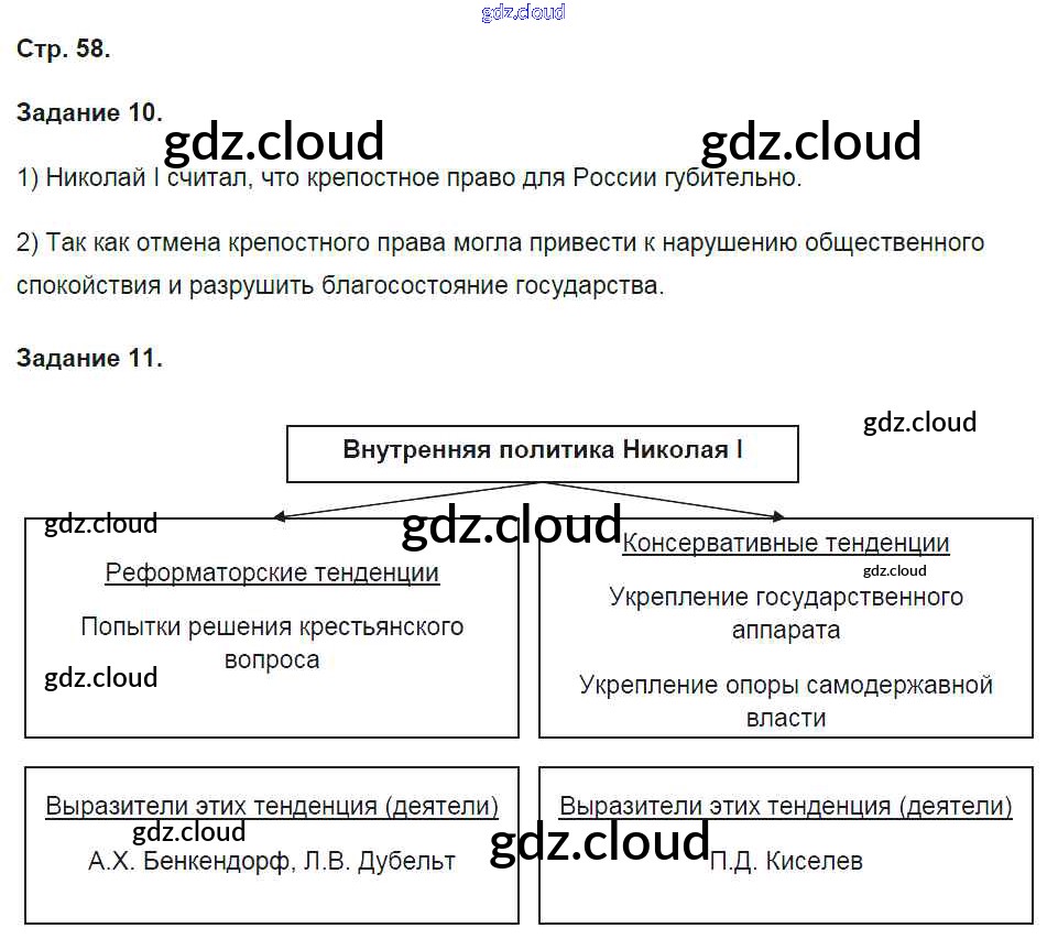 Ответ на задание стр.58 Рабочая тетрадь История за 9 (девятый) класс Чернова УМК 2017 Часть 1, 2