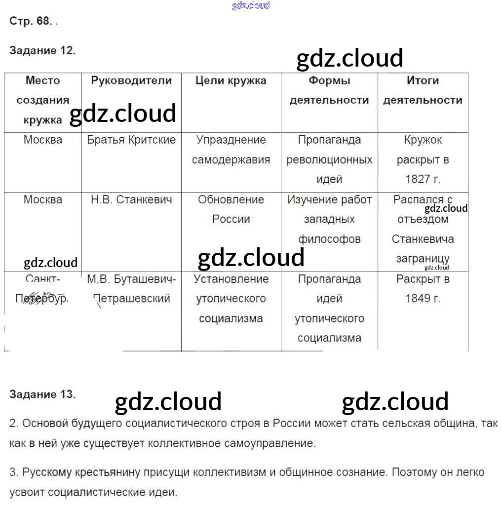 Ответ на задание стр.68 Рабочая тетрадь История за 9 (девятый) класс Чернова УМК 2017 Часть 1, 2