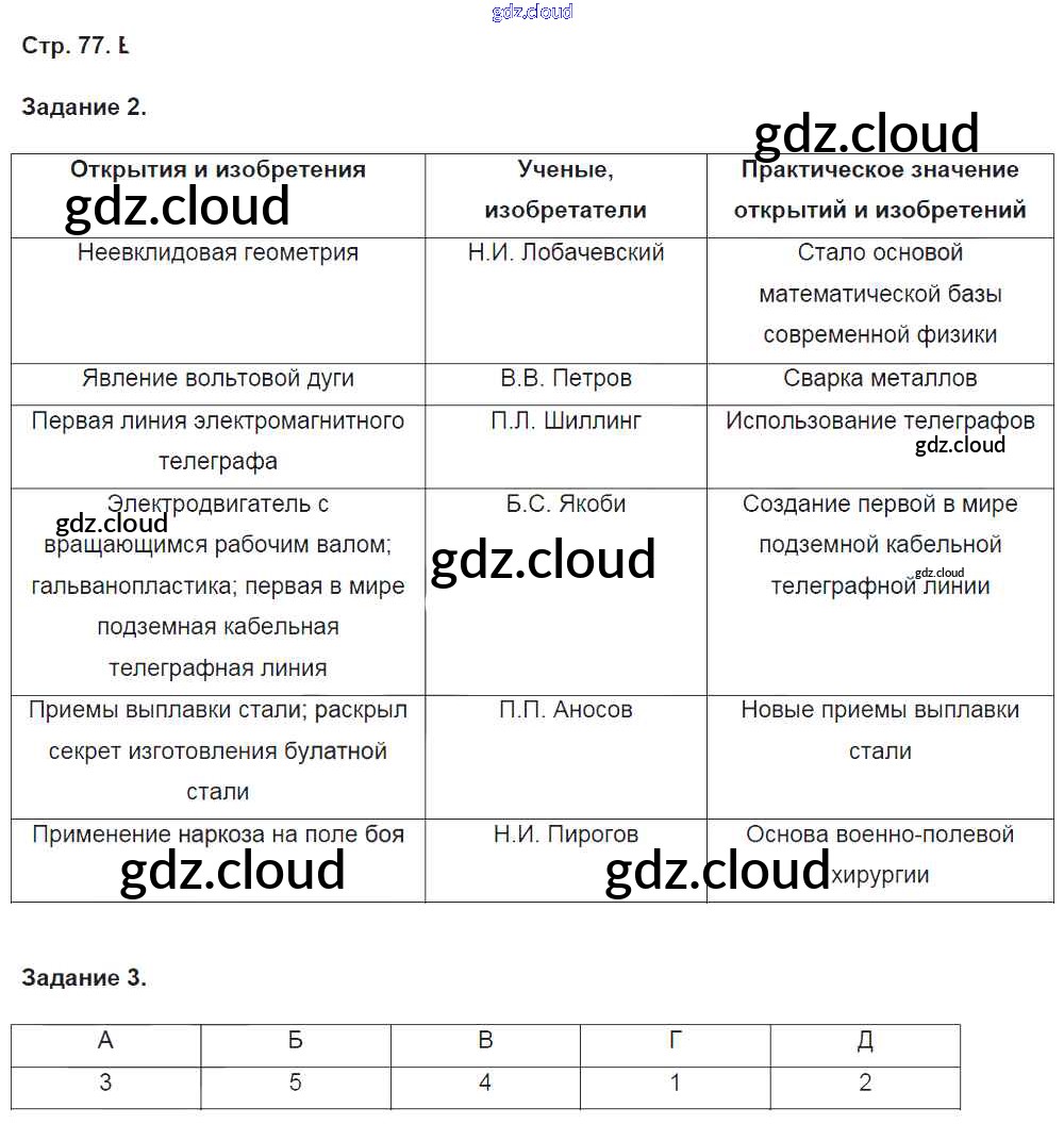 Ответ на задание стр.77 Рабочая тетрадь История за 9 (девятый) класс Чернова УМК 2017 Часть 1, 2