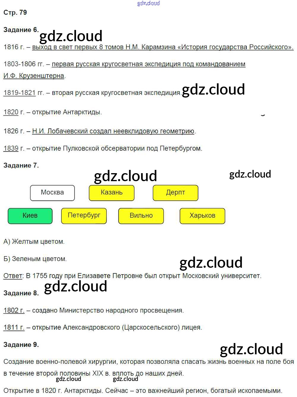 Ответ на задание стр.79 Рабочая тетрадь История за 9 (девятый) класс Чернова УМК 2017 Часть 1, 2