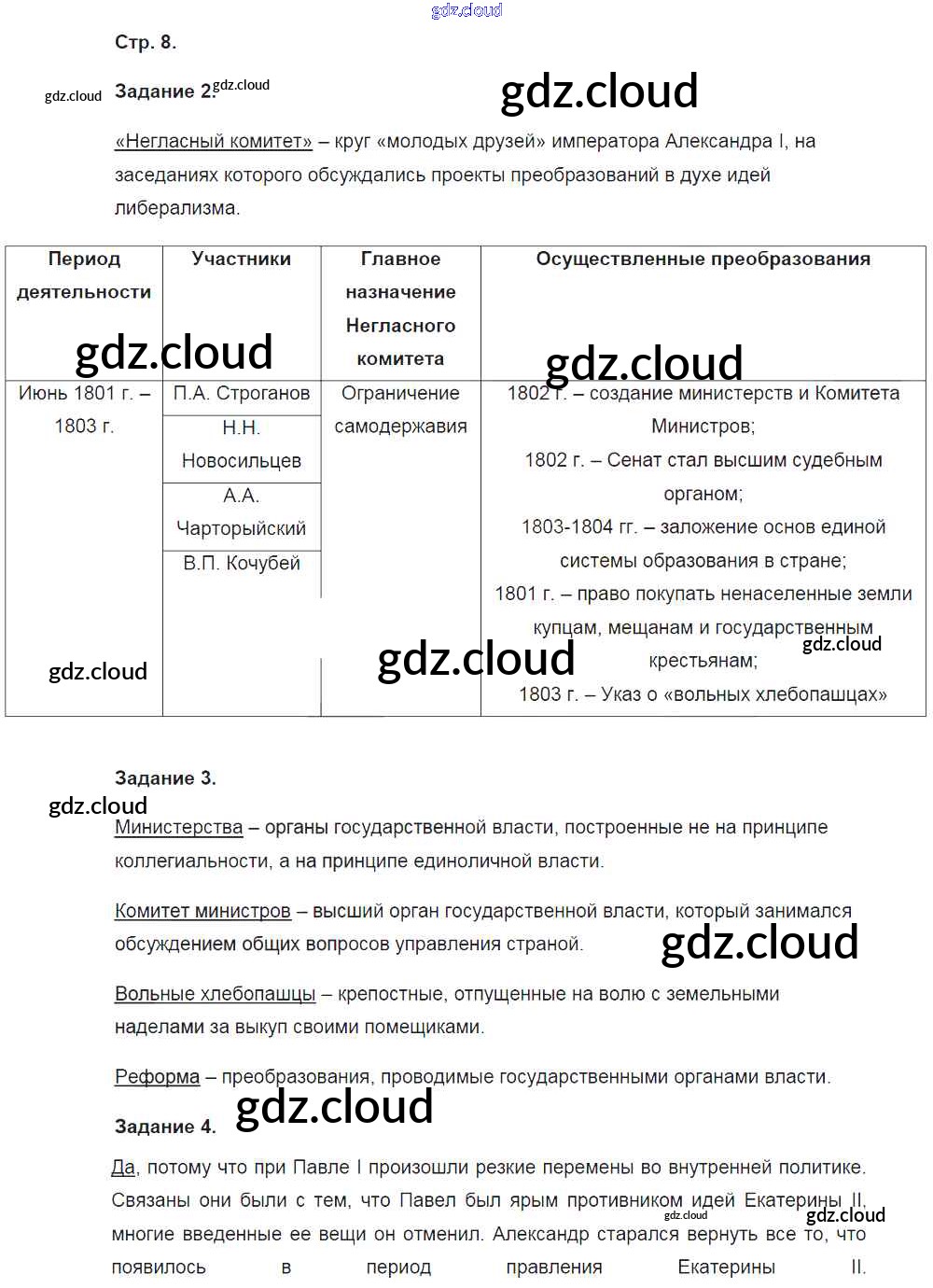 Ответ на задание стр.8 Рабочая тетрадь История за 9 (девятый) класс Чернова УМК 2017 Часть 1, 2 ФГОС онлайн и без номера телефона.
