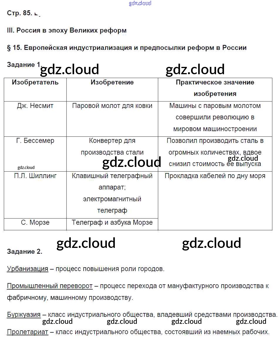 Ответ на задание стр.85 Рабочая тетрадь История за 9 (девятый) класс Чернова УМК 2017 Часть 1, 2