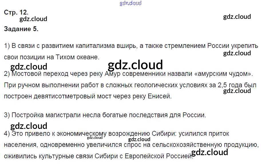 Ответ на задание стр.12 Рабочая тетрадь История за 9 (девятый) класс Чернова УМК 2017 Часть 1, 2