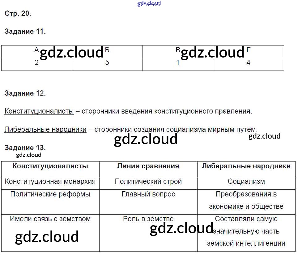 Ответ на задание стр.20 Рабочая тетрадь История за 9 (девятый) класс Чернова УМК 2017 Часть 1, 2