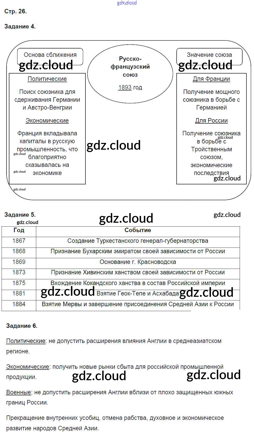 Ответ на задание стр.26 Рабочая тетрадь История за 9 (девятый) класс Чернова УМК 2017 Часть 1, 2