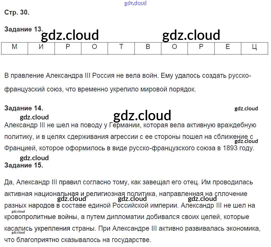 Ответ на задание стр.30 Рабочая тетрадь История за 9 (девятый) класс Чернова УМК 2017 Часть 1, 2
