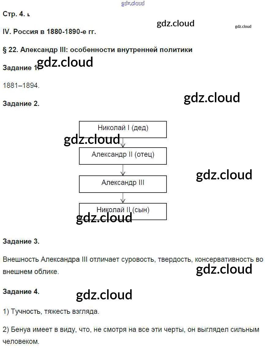 Ответ на задание стр.4 Рабочая тетрадь История за 9 (девятый) класс Чернова УМК 2017 Часть 1, 2 ФГОС онлайн и без номера телефона.