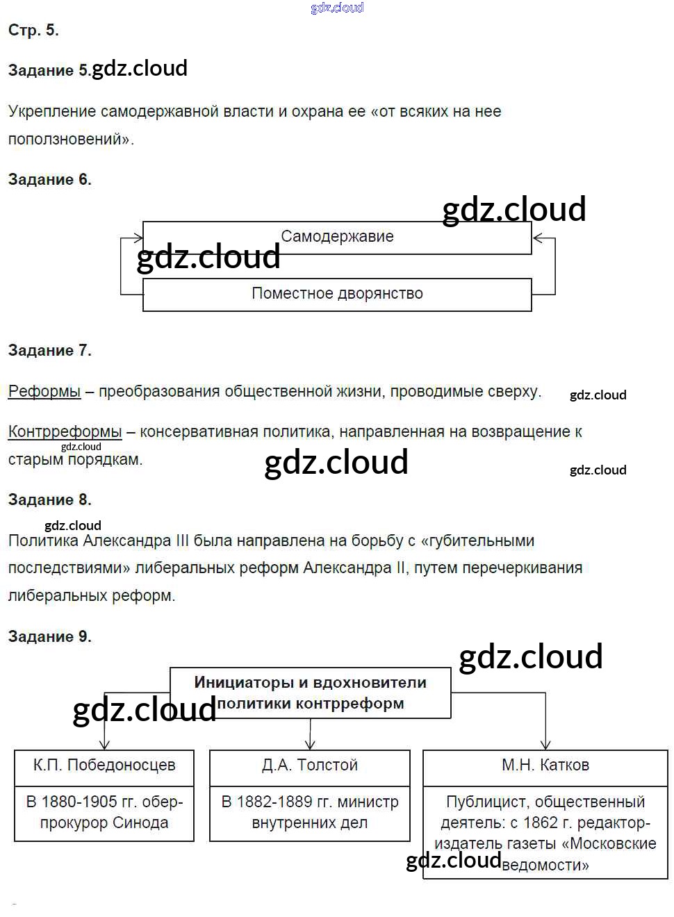 Ответ на задание стр.5 Рабочая тетрадь История за 9 (девятый) класс Чернова УМК 2017 Часть 1, 2 ФГОС онлайн и без номера телефона.