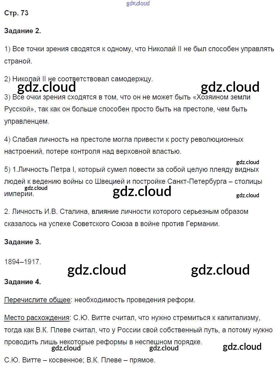 Ответ на задание стр.73 Рабочая тетрадь История за 9 (девятый) класс Чернова УМК 2017 Часть 1, 2