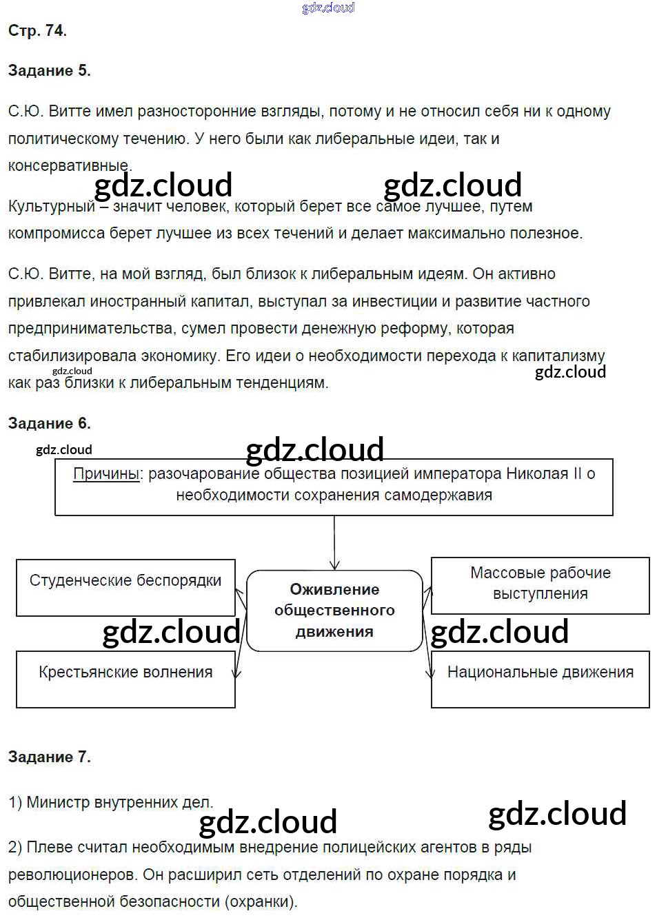 Ответ на задание стр.74 Рабочая тетрадь История за 9 (девятый) класс Чернова УМК 2017 Часть 1, 2