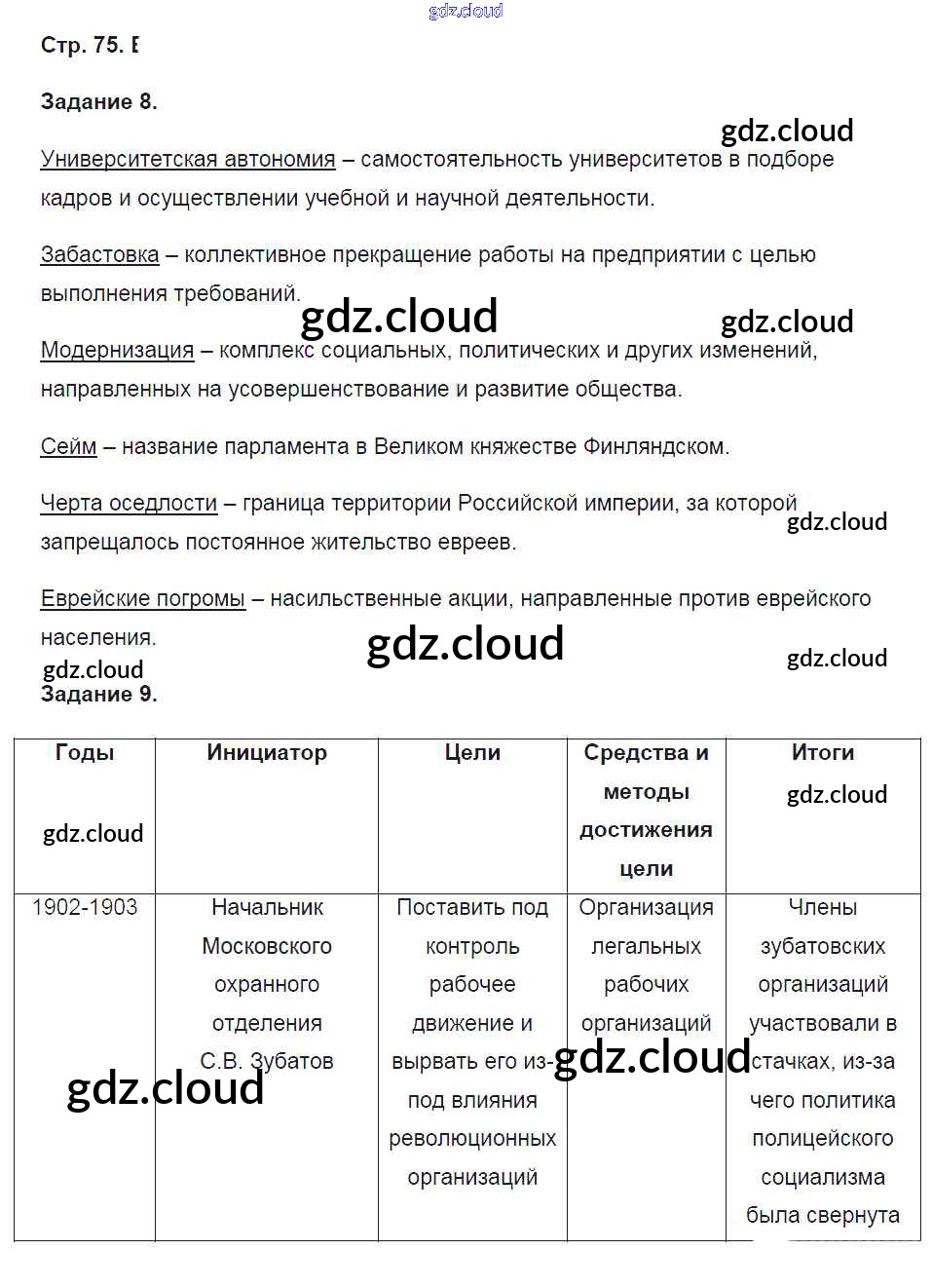 Ответ на задание стр.75 Рабочая тетрадь История за 9 (девятый) класс Чернова УМК 2017 Часть 1, 2
