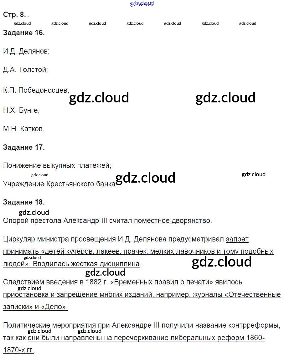 Ответ на задание стр.8 Рабочая тетрадь История за 9 (девятый) класс Чернова УМК 2017 Часть 1, 2 ФГОС онлайн и без номера телефона.