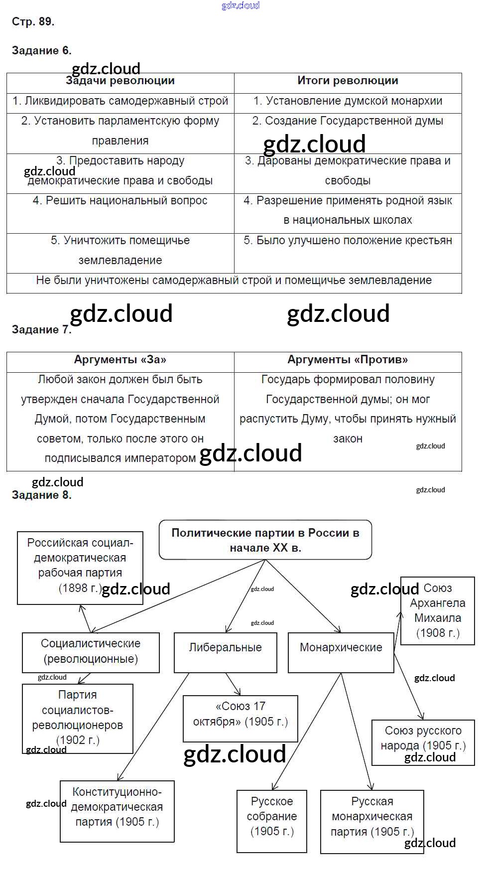 Ответ на задание стр.89 Рабочая тетрадь История за 9 (девятый) класс Чернова УМК 2017 Часть 1, 2