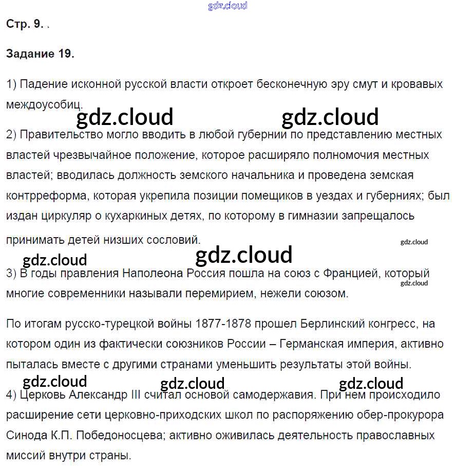 Ответ на задание стр.9 Рабочая тетрадь История за 9 (девятый) класс Чернова УМК 2017 Часть 1, 2 ФГОС онлайн и без номера телефона.