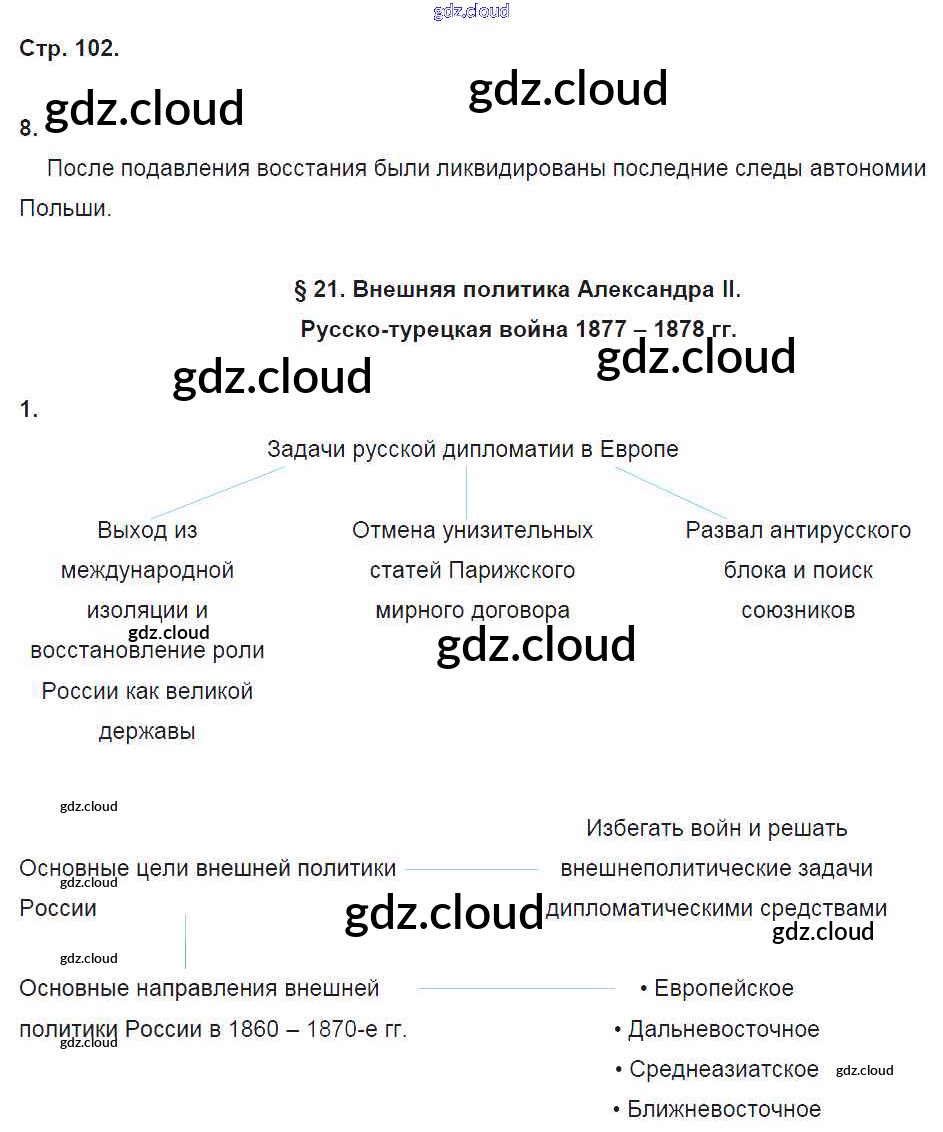 Ответ на задание стр.102 Рабочая тетрадь История за 9 (девятый) класс Данилов, Косулина, Лукутин, Макарова УМК 2017 Часть 1, 2