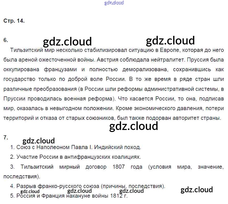 Ответ на задание стр.14 Рабочая тетрадь История за 9 (девятый) класс Данилов, Косулина, Лукутин, Макарова УМК 2017 Часть 1, 2