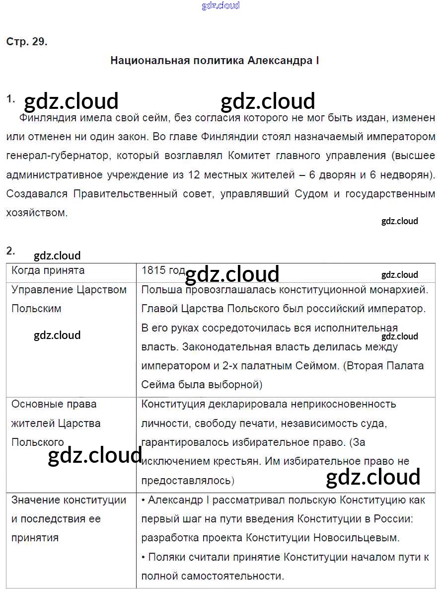 Ответ на задание стр.29 Рабочая тетрадь История за 9 (девятый) класс Данилов, Косулина, Лукутин, Макарова УМК 2017 Часть 1, 2