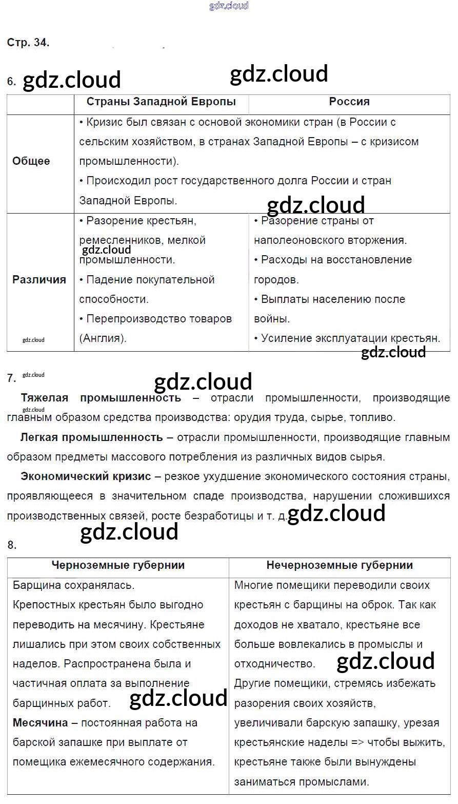 Ответ на задание стр.34 Рабочая тетрадь История за 9 (девятый) класс Данилов, Косулина, Лукутин, Макарова УМК 2017 Часть 1, 2