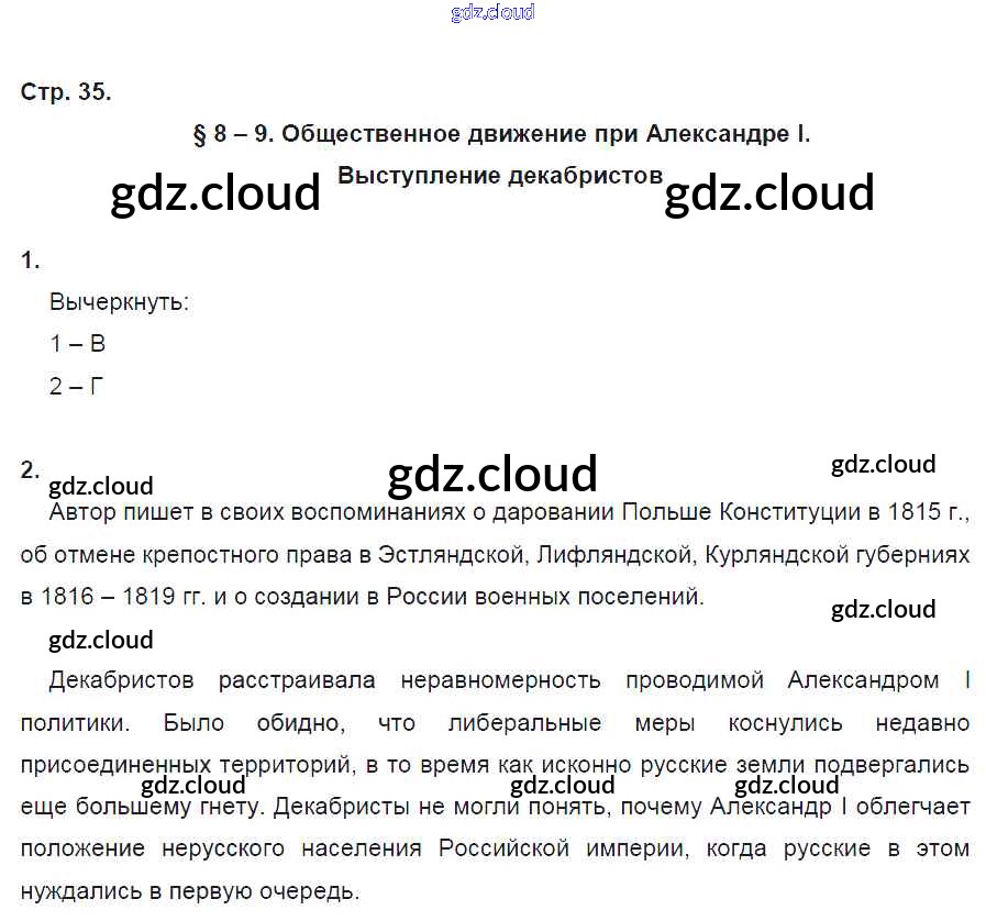 Ответ на задание стр.35 Рабочая тетрадь История за 9 (девятый) класс Данилов, Косулина, Лукутин, Макарова УМК 2017 Часть 1, 2