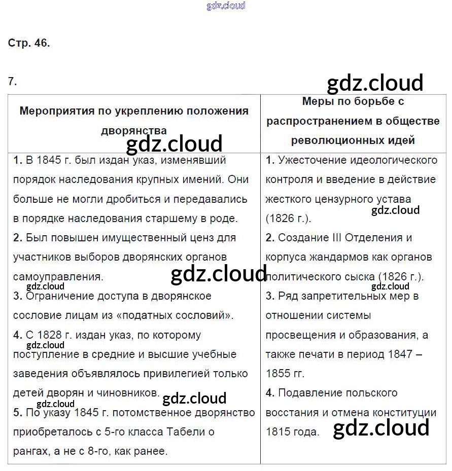 Ответ на задание стр.46 Рабочая тетрадь История за 9 (девятый) класс Данилов, Косулина, Лукутин, Макарова УМК 2017 Часть 1, 2