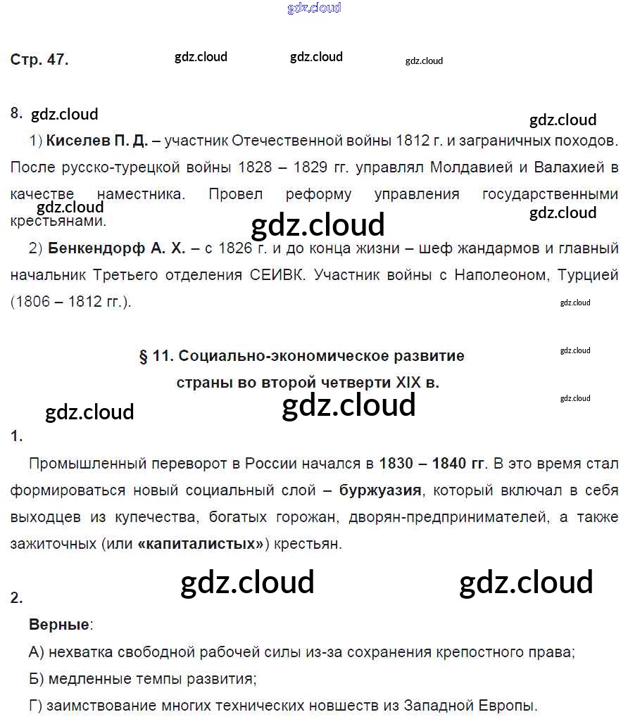 Ответ на задание стр.47 Рабочая тетрадь История за 9 (девятый) класс Данилов, Косулина, Лукутин, Макарова УМК 2017 Часть 1, 2