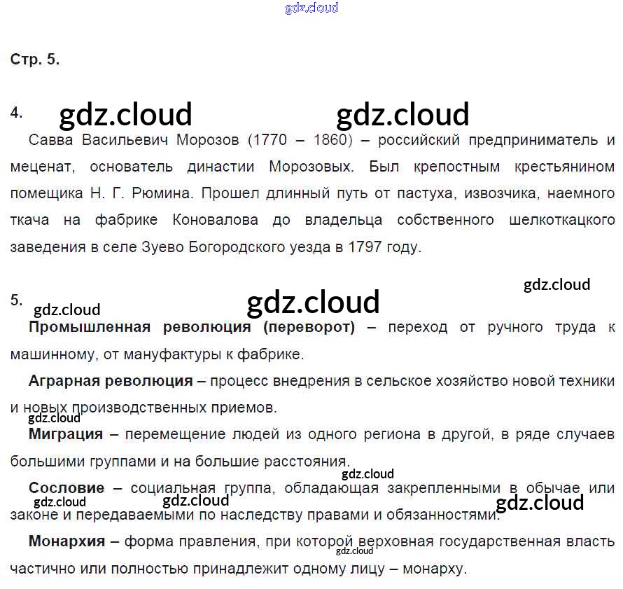 Ответ на задание стр.5 Рабочая тетрадь История за 9 (девятый) класс Данилов, Косулина, Лукутин, Макарова УМК 2017 Часть 1, 2