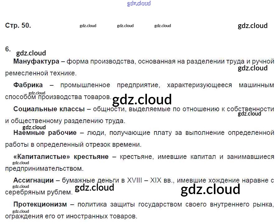 Ответ на задание стр.50 Рабочая тетрадь История за 9 (девятый) класс Данилов, Косулина, Лукутин, Макарова УМК 2017 Часть 1, 2