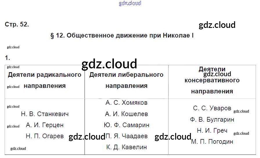 Ответ на задание стр.52 Рабочая тетрадь История за 9 (девятый) класс Данилов, Косулина, Лукутин, Макарова УМК 2017 Часть 1, 2
